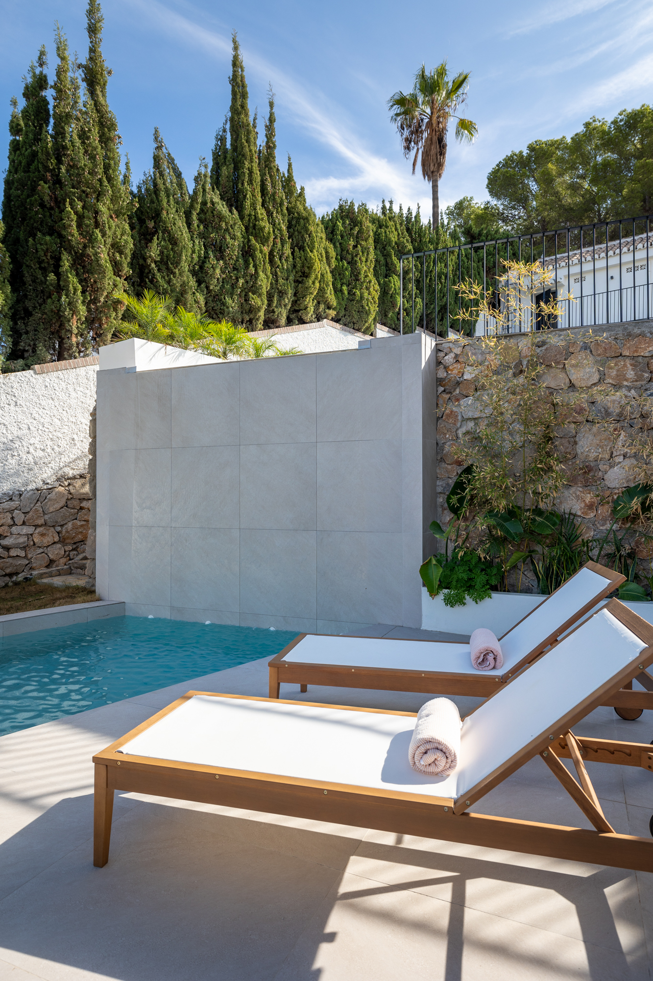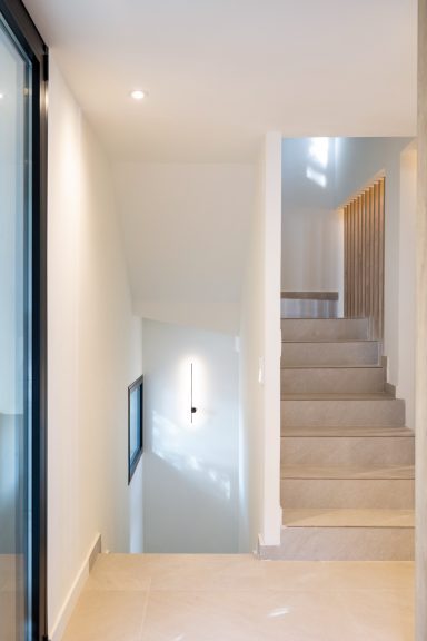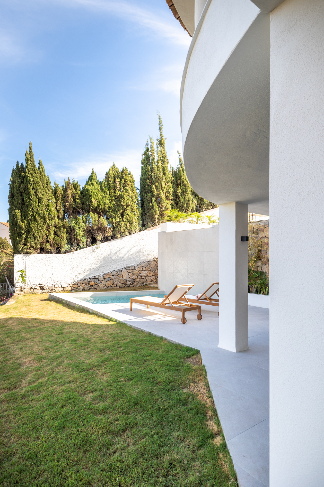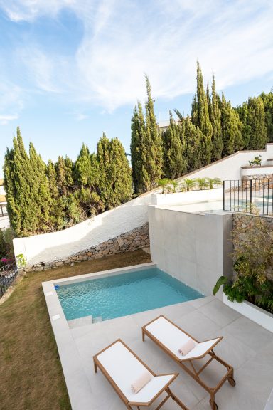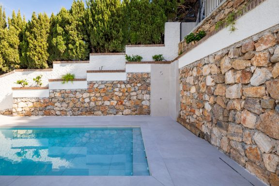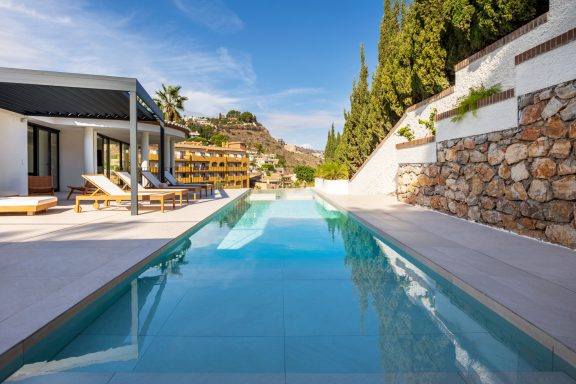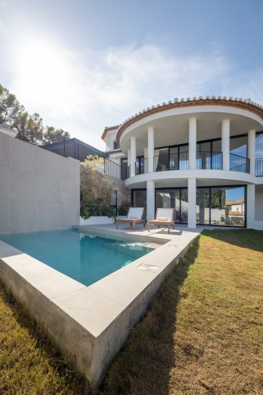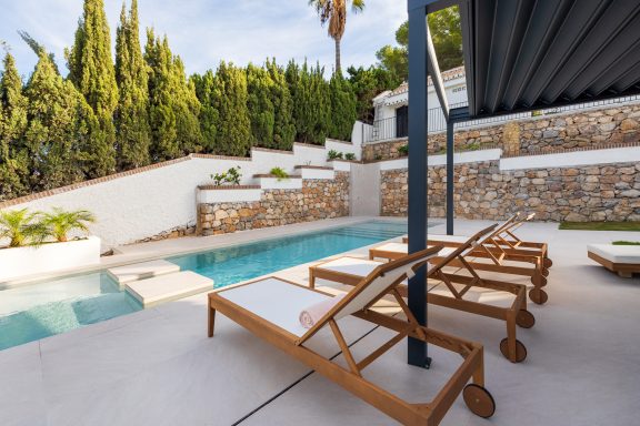 Reforma de vivienda de tres plantas de 330 m² más exteriores con piscina.