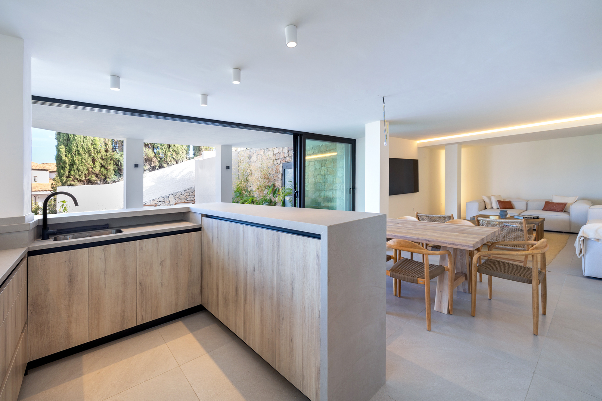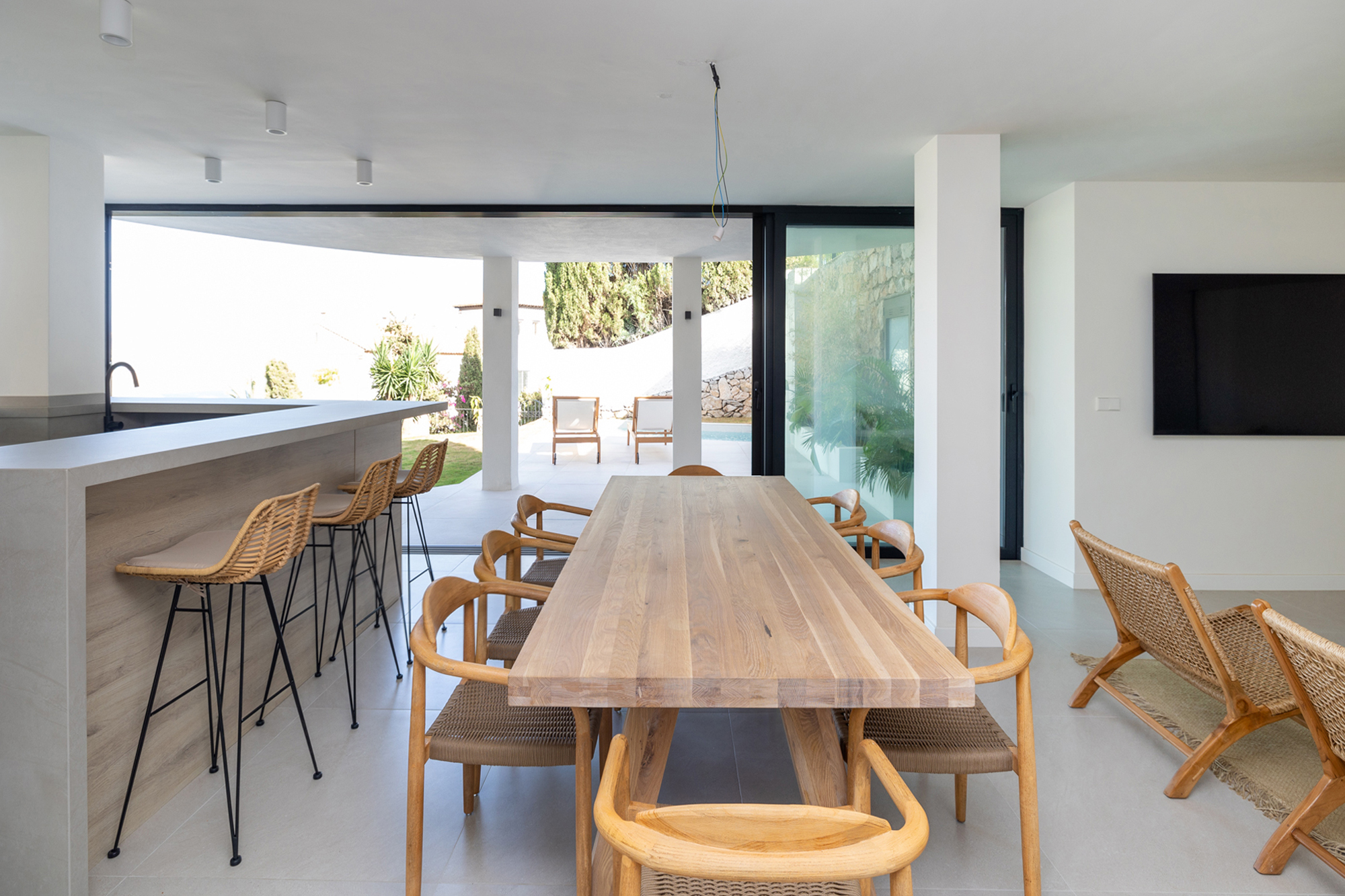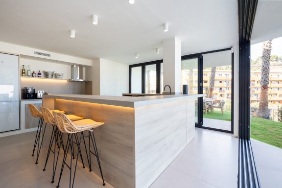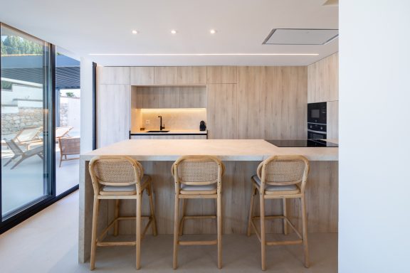 Reforma de vivienda de tres plantas de 330 m² más exteriores con piscina.